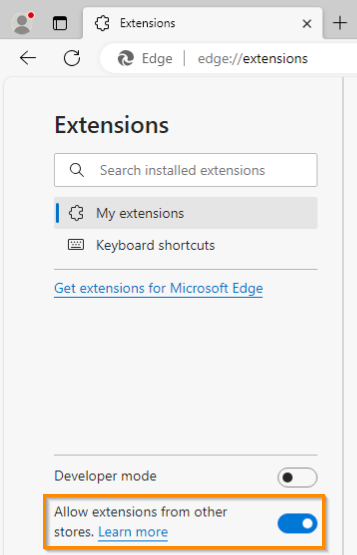 - Toggle the Allow extensions from other stores switch. In the pop-up, select Allow.