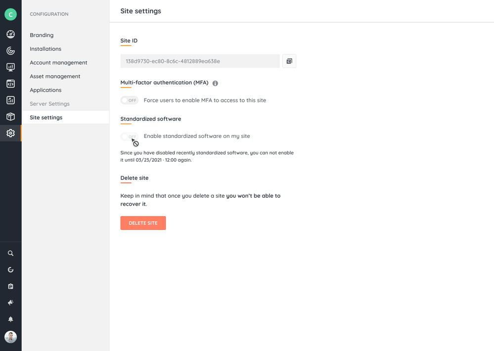 Due to the resource cost of switching between raw and standardized software, if you decide to disable standardized software, you will not be able to re-enable it for 7 days.