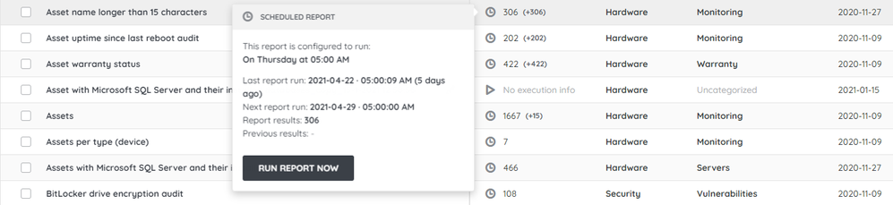 In addition, you can now see the change in the results of your report compared to the previous execution. So you’ll know instantly whether the report has had more or less results since last time.