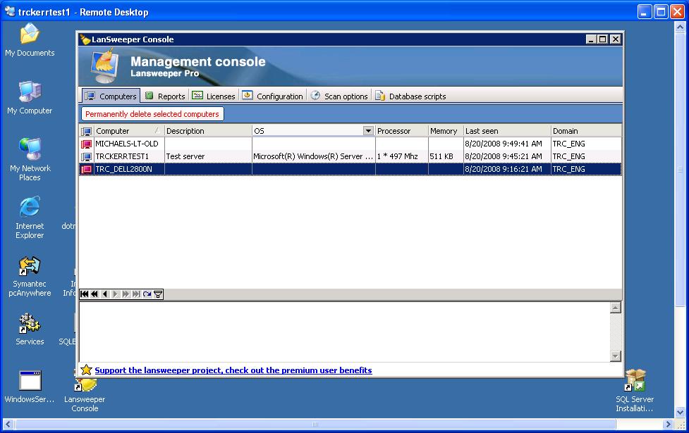 Now I'm trying to scan other computers and I see the computer name on the list in the console but they are in red with no further information.