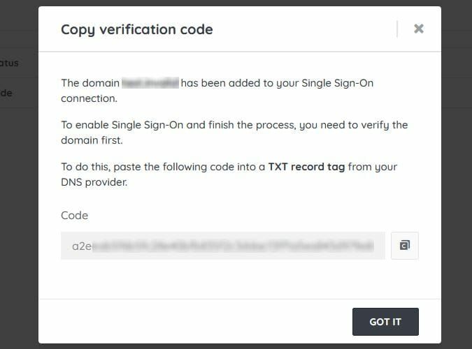 - Select Got it and wait a few minutes for the DNS verification to automatically happen. Alternatively, select Verify Domain.
