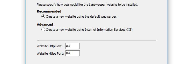 - If selected, the Lansweeper web console will be installed under the web server of your choice and your preferred ports.