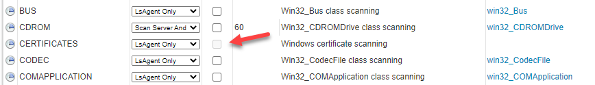 However, our checkbox for CERTIFICATES, under Scanned Item Interval, is already unchecked. In fact, it's grayed out and it's not checkable or uncheckable.