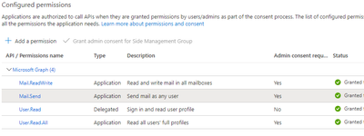 Within the "e-mail alerts" configuration page, I get this error regardless of if I am using an email address that has been granted permissions to the registered app or not: