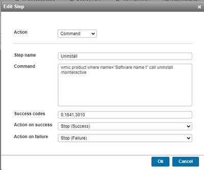 Command - wmic product where name="Software Name" call uninstall /nointeractive