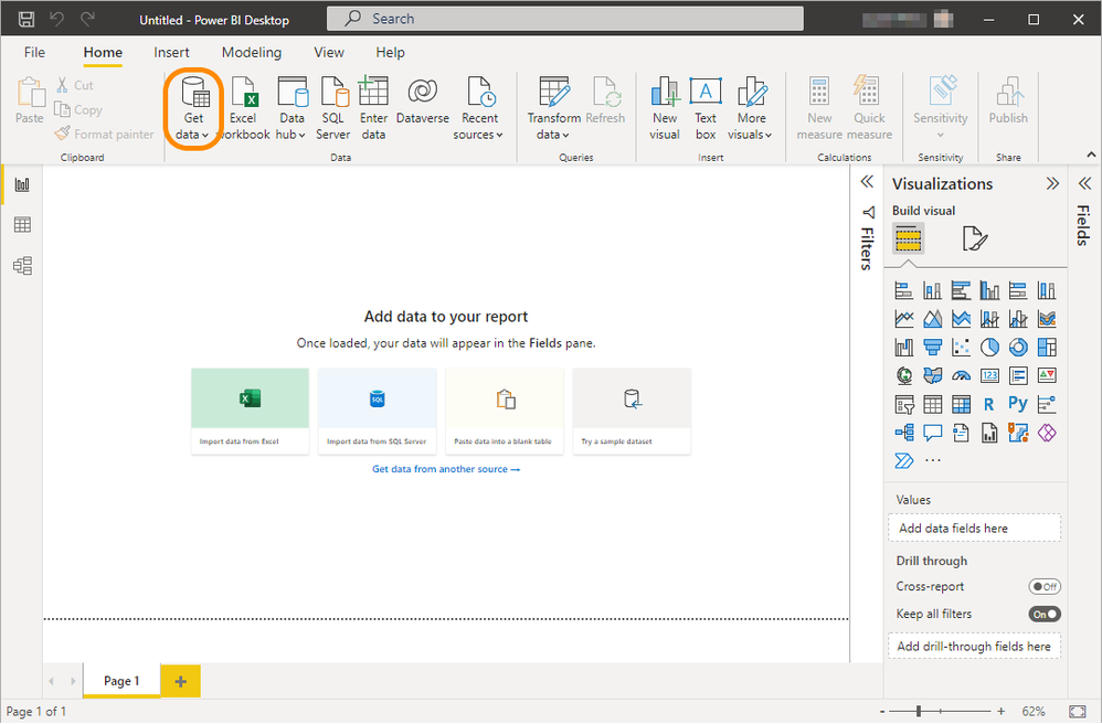 Power BI Desktop is required which can be downloaded from this link. Once Power BI Desktop is downloaded and installed, create a new dashboard template: