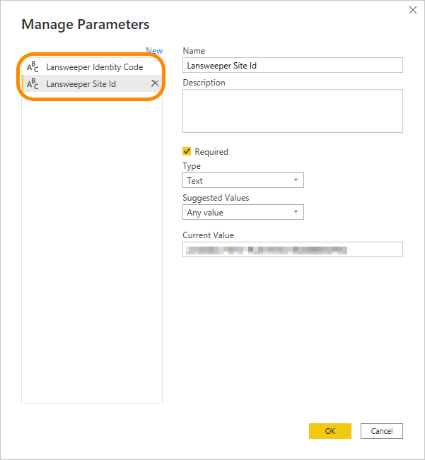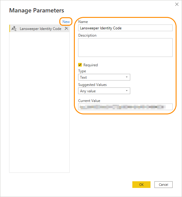 - For Current Value, provide the generated Identity Code (API Token) for your Lansweeper API Client.