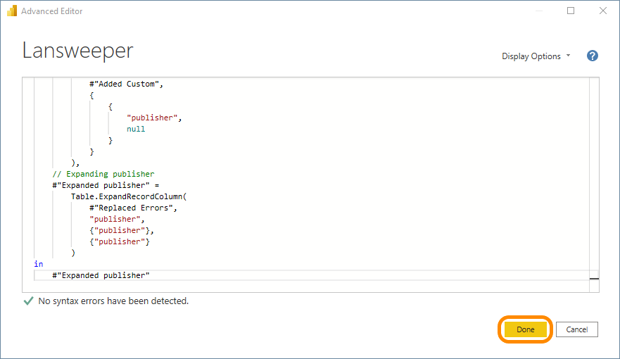 7. Go to the Home tab in your top menu bar and click the Advanced Editor button under the Query section. This will open up the Advanced Editor dialog box, and you can edit the query as needed.