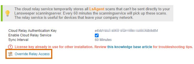 In addition to your relay authentication key, your Lansweeper license key and a unique identifier (GUID) generated during the setup of your Lansweeper installation are also used to uniquely identify your installation on our relay server.