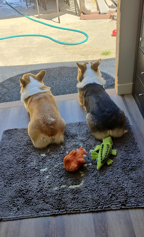 When COVID hit, we converted a Tuffshed in our backyard to my WFH office. Rain, shine, snow, 100* heat, doesnt matter. If I'm out in my 'office', they *MUST* be outside too, and the door must *NOT* be shut....And fetch breaks *must* happen hourly at a minimum.