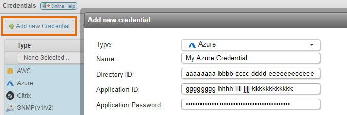 Submit your Azure Active Directory (tenant) ID, application ID and application password as a credential in the Scanning > Scanning Credentials section of the web console.