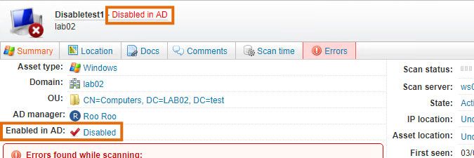 Disabled Active Directory computers are very likely to have a scanning error. Their Active Directory status will prevent them from being logged onto the network and will therefore prevent them from being scanned directly.