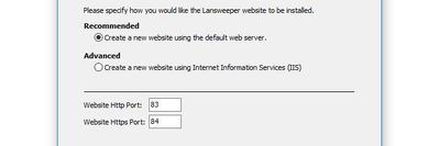 If selected, the Lansweeper web console will be installed under the web server of your choice and your preferred ports.