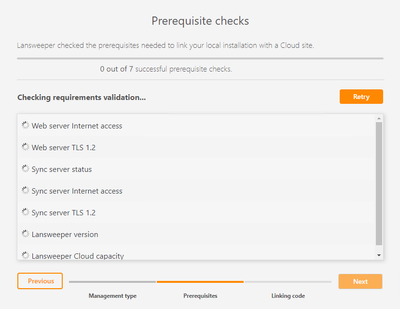 The installation will only take a few minutes. When ready, prerequisite checks will run to check if your installation is ready to sync to Cloud. One of the main checks is testing internet access. More information on the requirements can be found here.